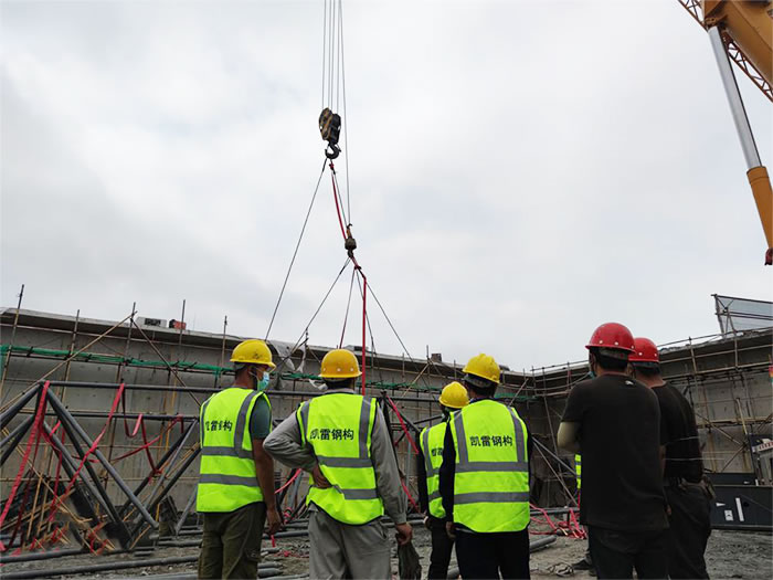 6.为确保.濮阳加油站球形网架安装顺利,应有详细的濮阳施工组织设计。网架安装必须保证结构的稳定性和不产生的附加变形。